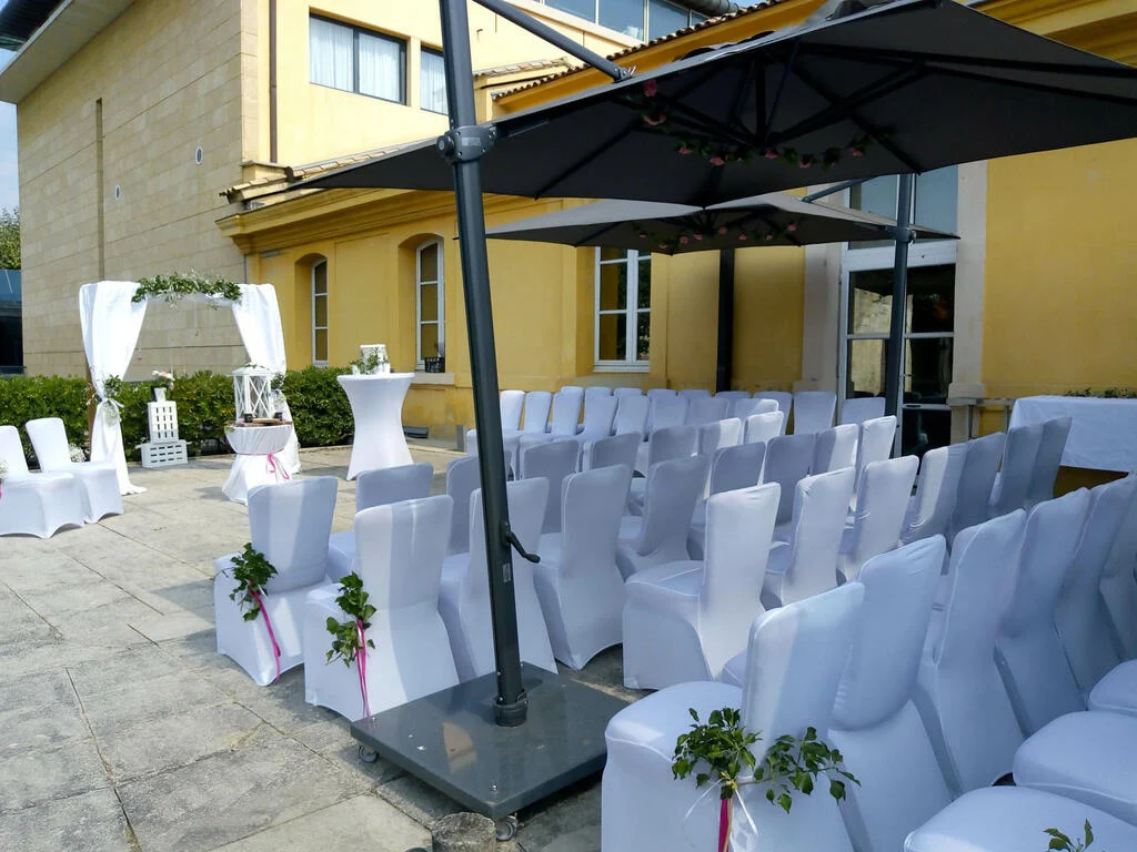 490m² d'espace de réception, composé de deux salons de réception de 290m² et de 160m² pouvant accueillir jusqu'à 180 personnes sur place. Vous aurez la possibilité de réserver l'une de nos 112 chambres contemporaines, tout confort, côté jardin, ou vieille ville